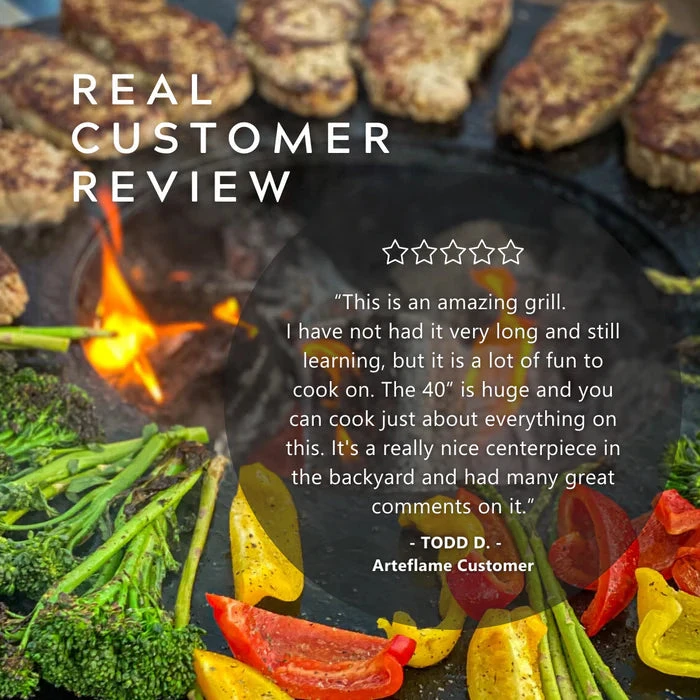 The Arteflame Classic 40″ grill is a one of a kind grilling experience. The cooktop is made of 1/2″ carbon steel and the spun bowl is a high grade of US CORTEN steel or “weathering” steel.