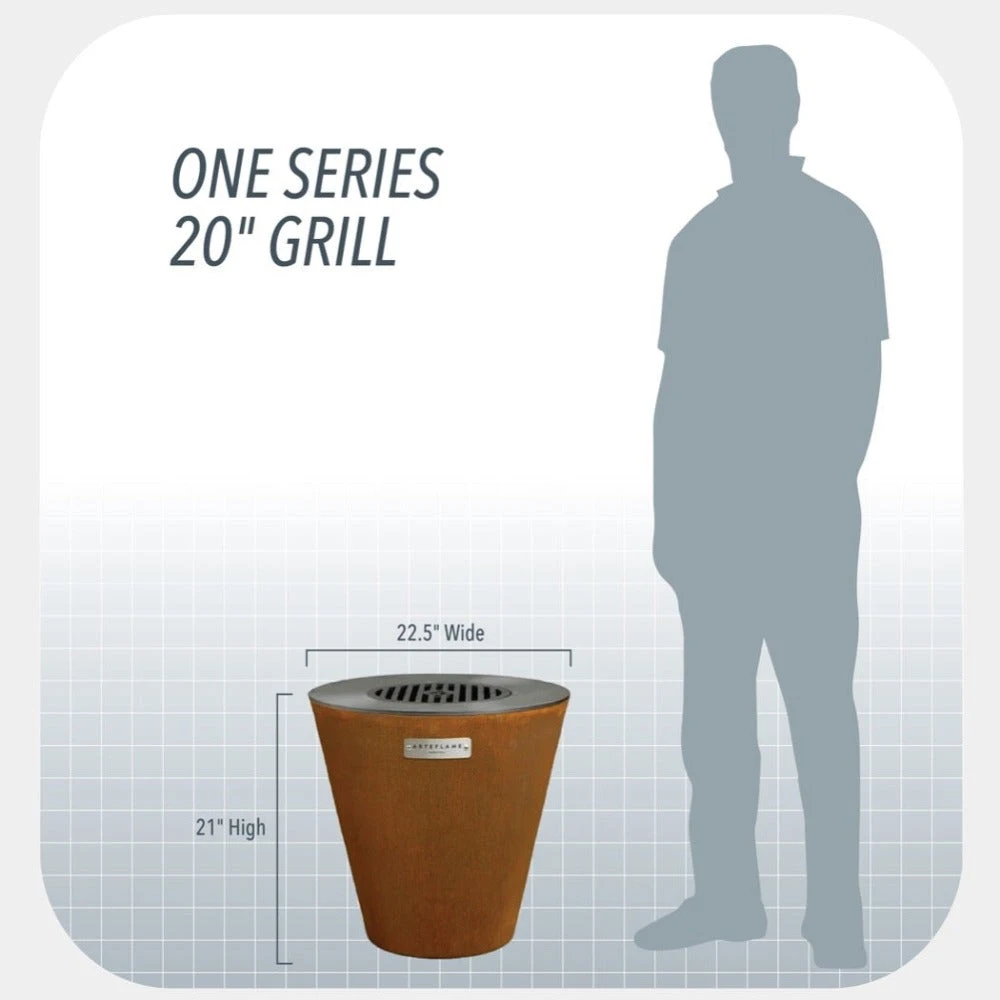 The new One Series Arteflame design is based on the same concept as the Classic Arteflame 40″ grill but in a smaller format. The smaller design is fueled by charcoal or wood chunks and crafted in two pieces – a 1/4″ carbon steel cooktop and a US CORTEN steel base made to last a lifetime.