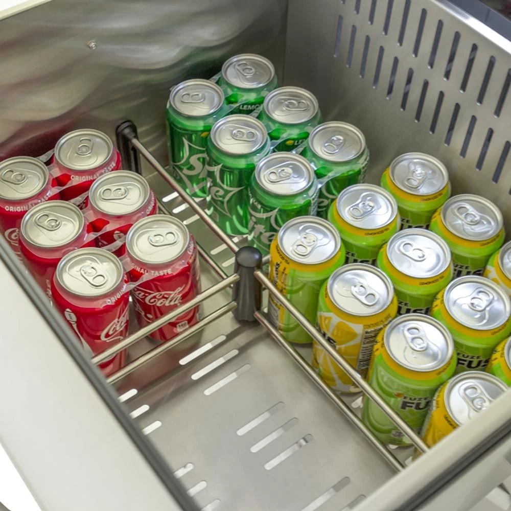 The Blaze 5.1 Outdoor Rated Double Drawer Refrigerator is the ideal space saving solution for outdoor kitchens built into your island. With 5.1 cubic feet of space, this refrigerator has ample room and can hold up to 154 cans!