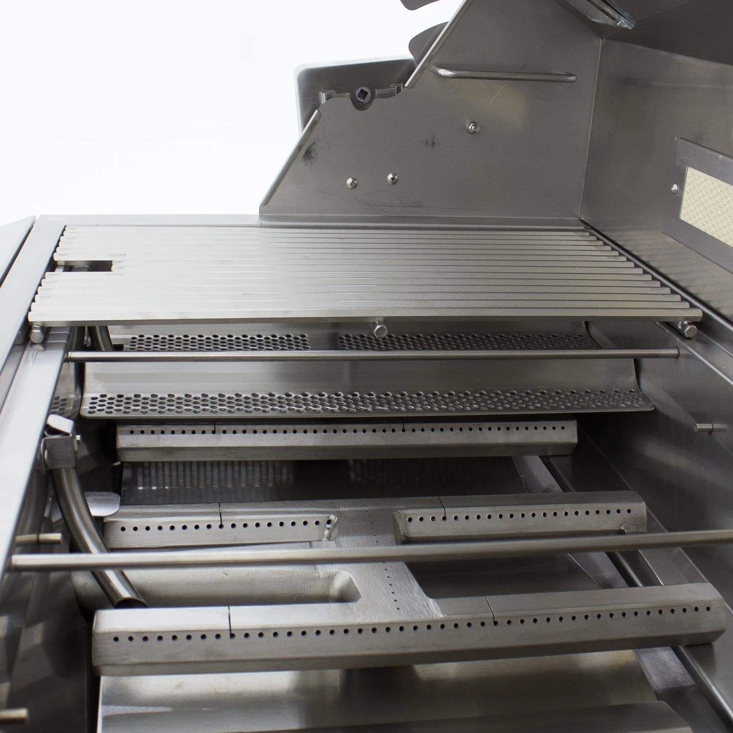 - Double-lined grill hood protects outer layer from heat discoloration and maintains more heat
