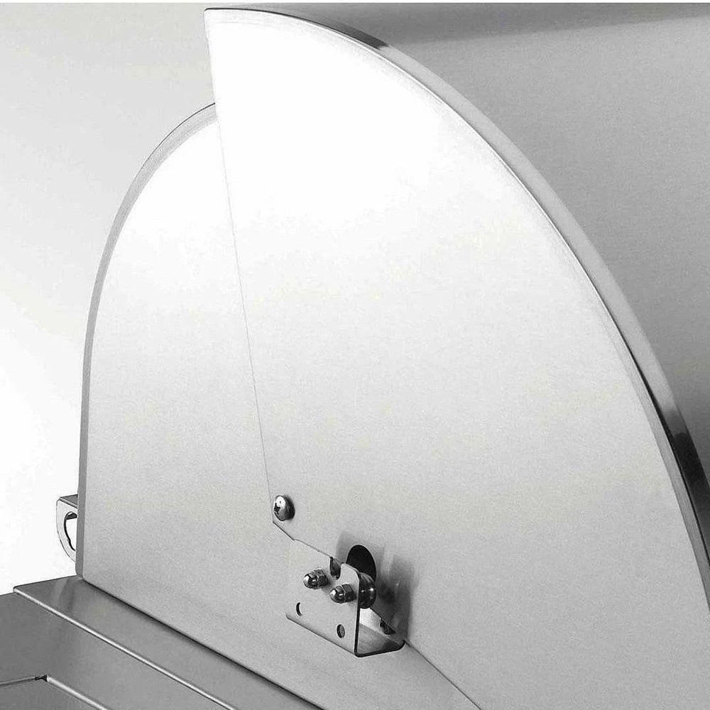 An analog thermometer with polished stainless steel bezel is embedded in the hood. It is large and attractive with a forward angle for easy viewing.