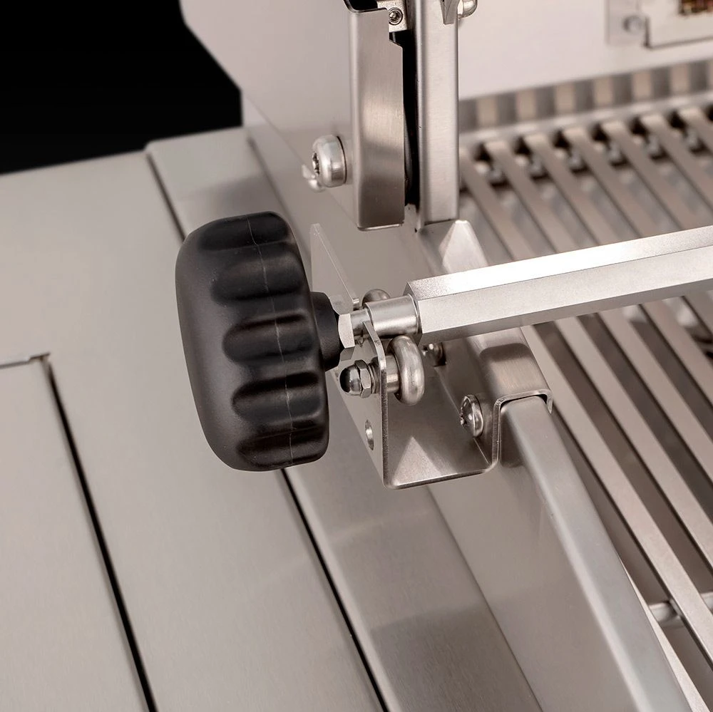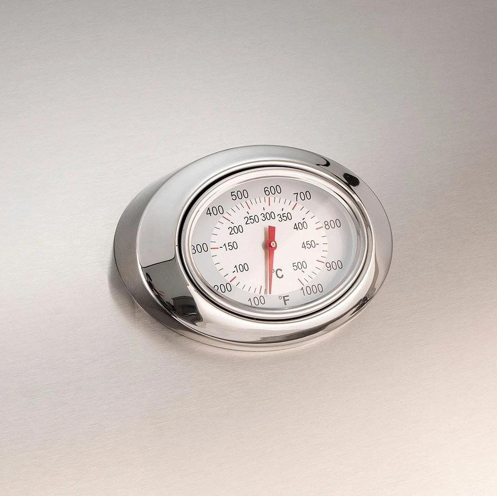 Echelon drip tray: Built with ball bearings for easy glide. Perfect size for easy handling. Use with Fire Magic drip tray liners for convenient cleanup. A chrome analog thermometer with meat probe is included, digital thermometer upgrade available which provides a state-of-the-art electronic thermometer display, with meat probe, and has an impressive array of features.