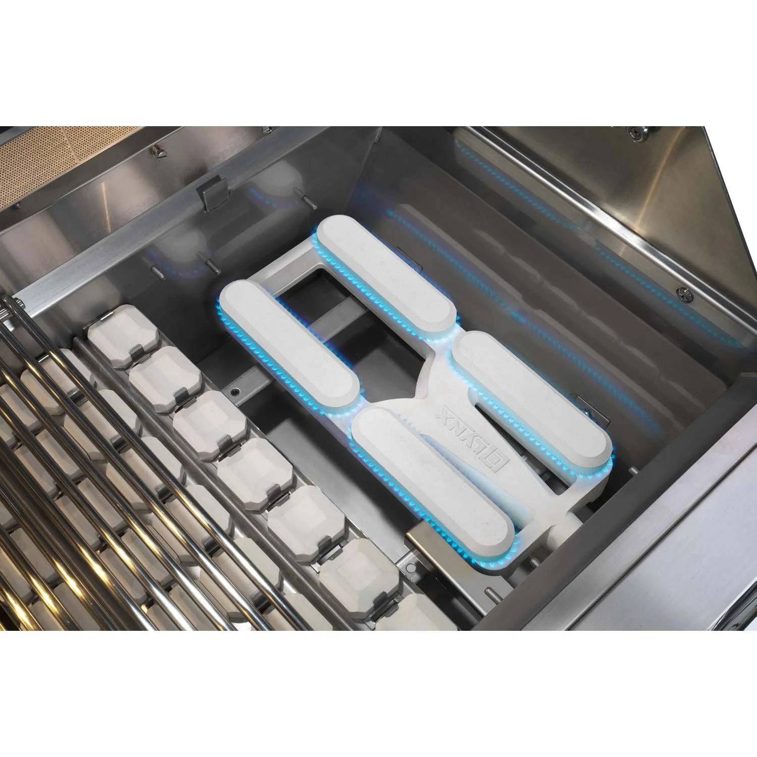First, the Lynx ceramic burner, which is made from cordierite ceramic, a material chosen for kilns and commercial ovens because of the temperatures that it endures. The burners are relentlessly, igniting them thousands of times, even when encrusted with sauce or encased with ice.