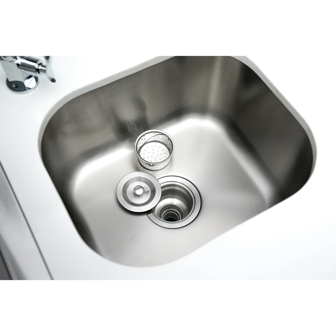 The integrated sink and faucet can be connected to a yard hose or permanent water source, offering flexibility for cleaning and food preparation. Designed for both mobility and stability, the beverage center is easy to move thanks to its heavy-duty caster wheels, making it adaptable for any outdoor setting. This unit can be used as a standalone feature or connected to existing Mont Alpi grill modules, creating a customized outdoor kitchen.
