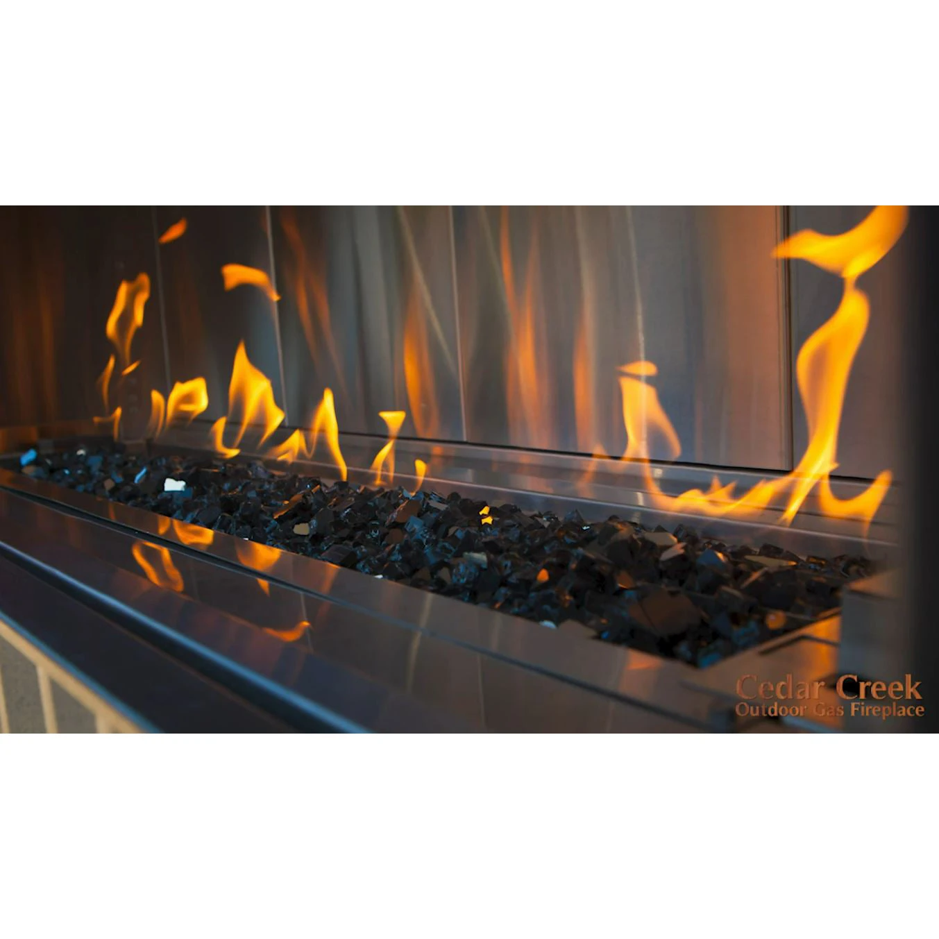 Make a modern statement with the Cedar Creek Outdoor LED outdoor linear gas fireplace. Designed with a clean and contemporary style in mind, no chimney or venting required makes it an ideal product for quick & efficient framing & finishing.