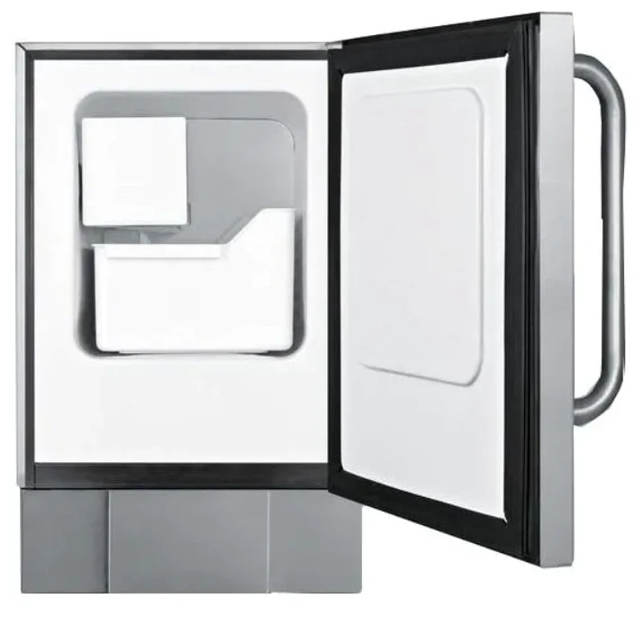 The BIM24OS can produce up to 12 lbs. of crescent shaped cubes in a day cycle, storing it in a carefully insulated storage bin. Operation does not require a drain. Our signature 12″ towel bar handle completes the package.
